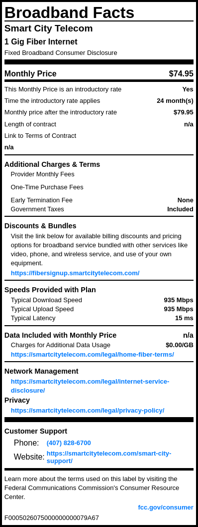We’re simplifying access to essential information—like prices, speeds, data allowances, and other important details—through Broadband Facts Labels. Just like nutrition labels, these labels clearly outline what’s included in your broadband plan for our customers.